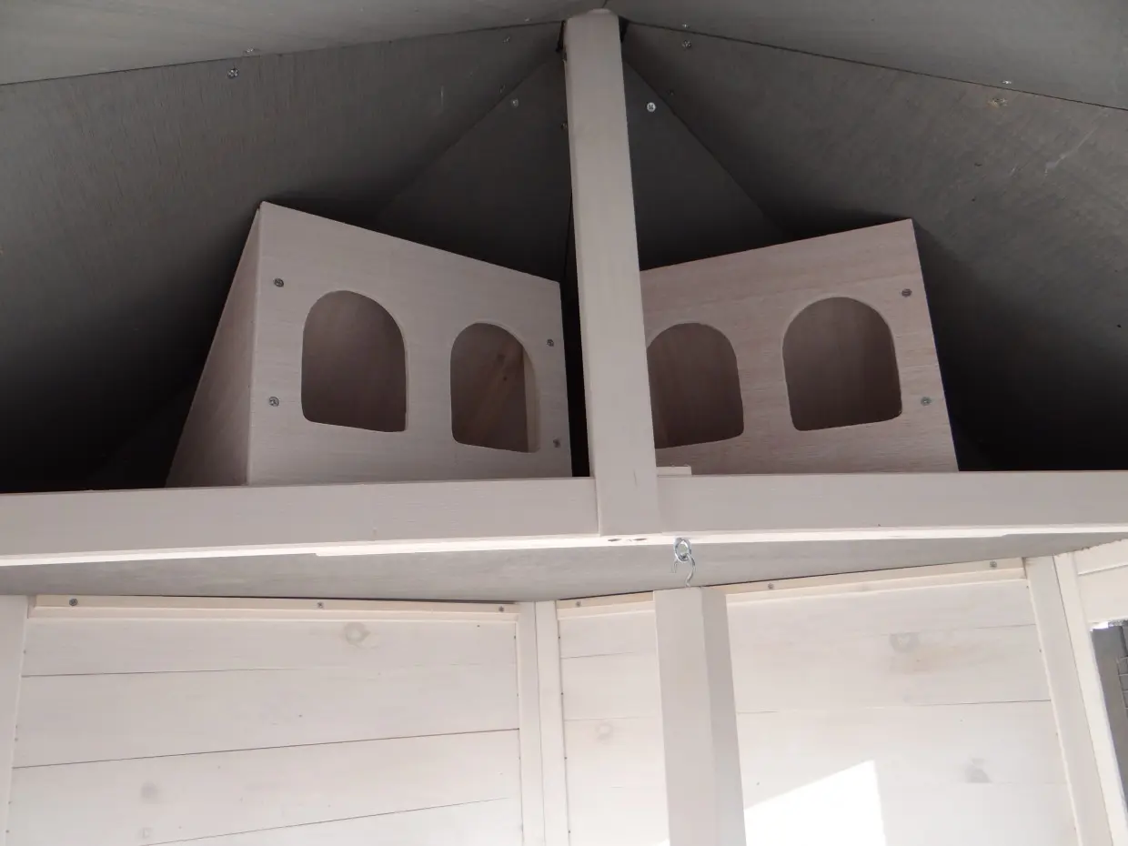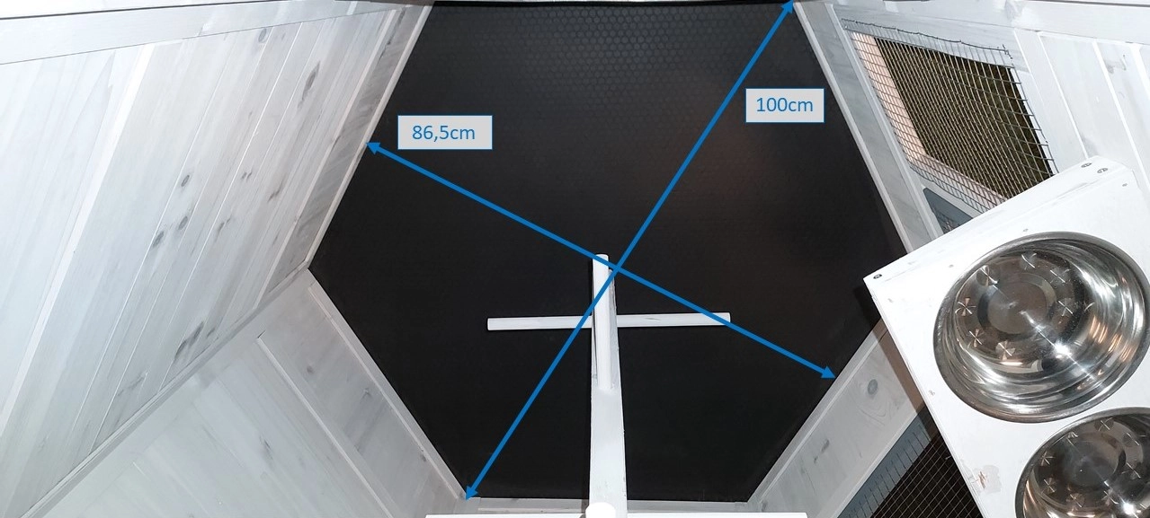 - Le toit d'enclos est équipé de maille (ca. 12x12mm)