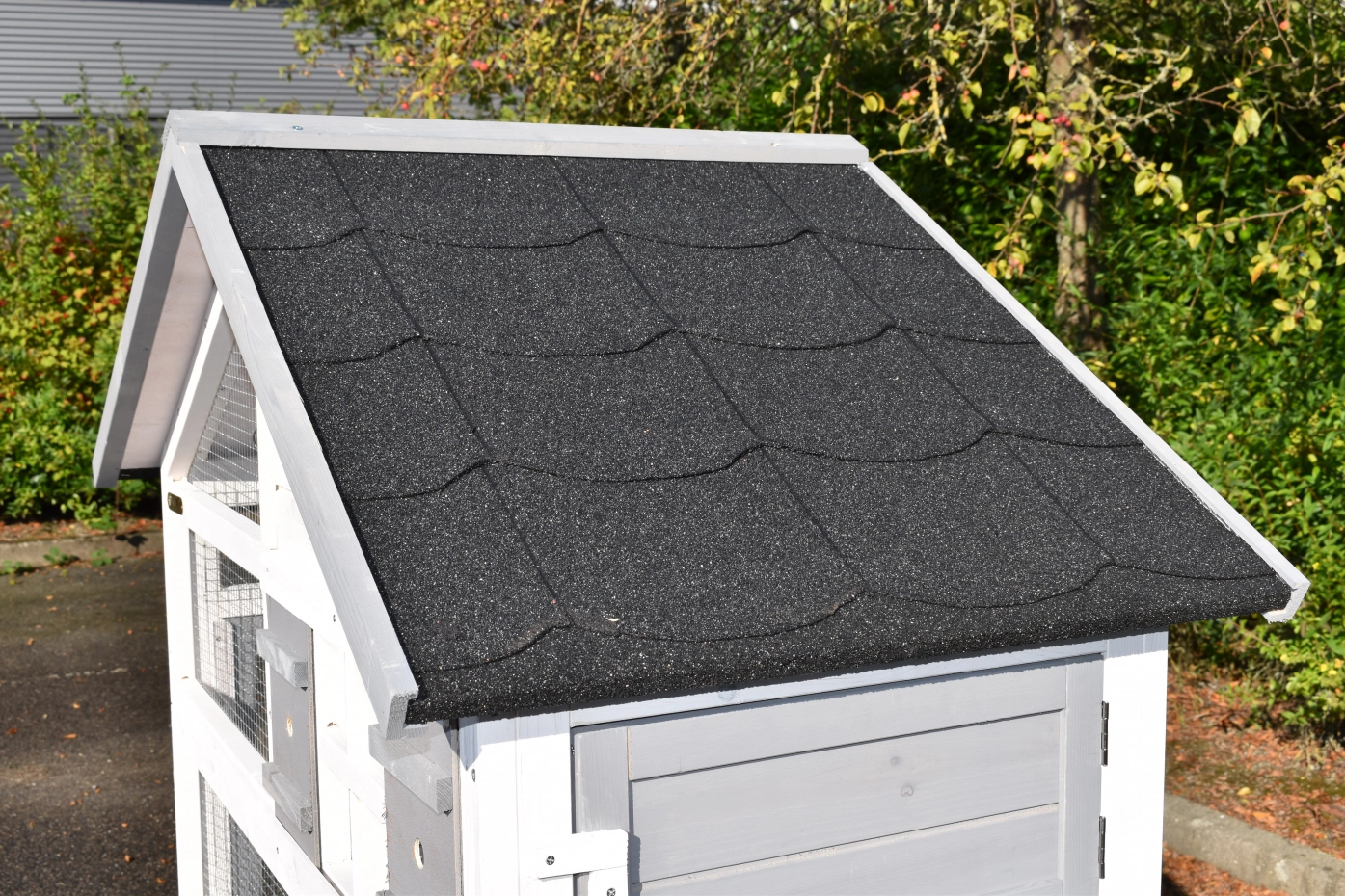 - Le toit de cette cage magnifique est soigneusement fini avec bitume en ardoise