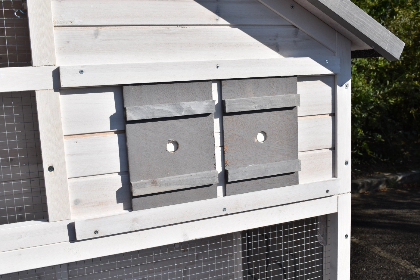 - Si ce n'est pas dans un endroit abrité, nous vous conseillons d'ancrer le clapier / poulailler