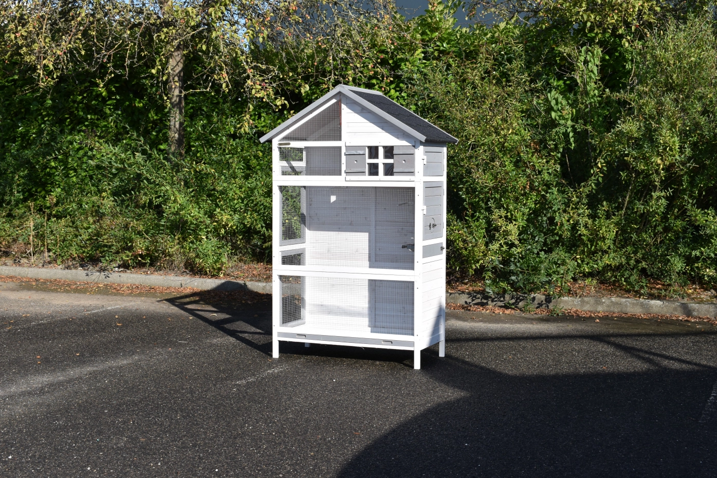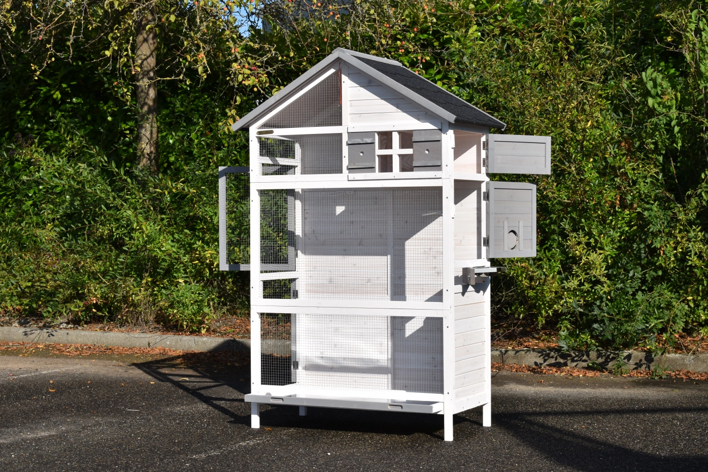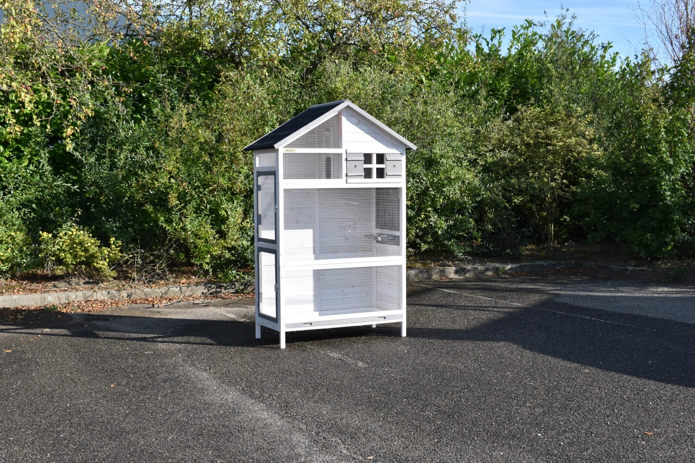 - Cette volière est équipée de portes spacieuses pour une accessibilité optimale