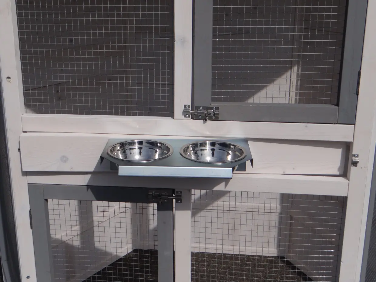 - Le toit d'enclos est équipé de maille (ca. 12x12mm)