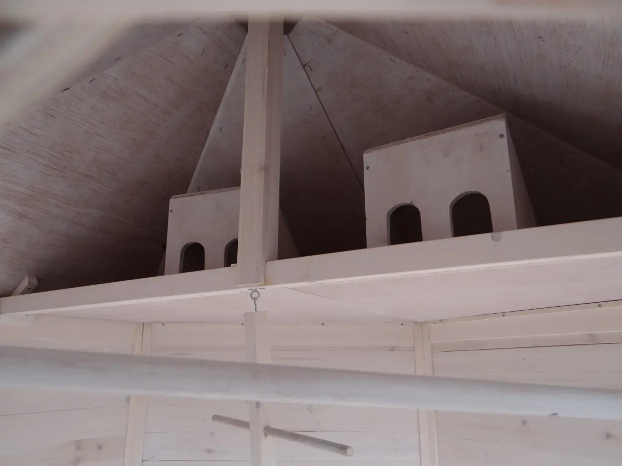 - Cette volière est équipé des nichoirs