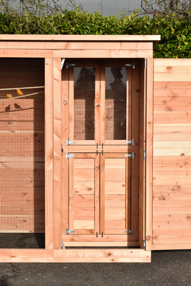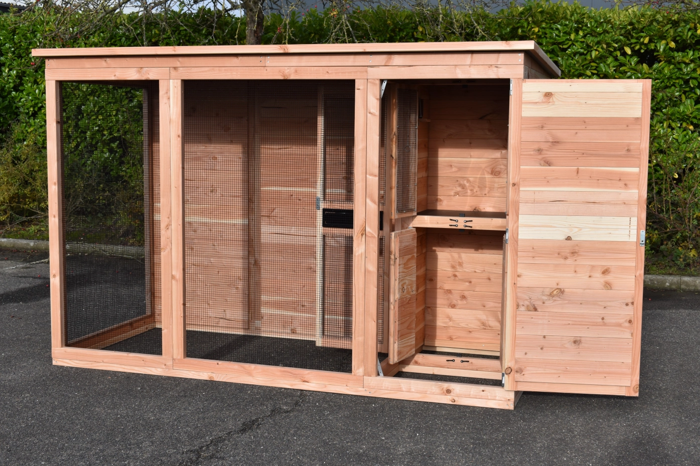L'Aviary Flex 3+.1+ est une volière d'extérieur compacte dotée d'un nombre surprenant de détails attrayants. Par exemple, cette volière est équipée d'un verrou d'accès qui vous permet d'atteindre les oiseaux sans qu'ils s'échappent. L'abri de nuit léger est équipé de 2 portes. L'ouverture ronde de l'abri nocturne vers le vol (run) peut être verrouillée. En outre, la volière dispose d'un clapier de rangement avec 2 portes et d'un toit aux finitions luxueuses. Le Flex est une magnifique volière conçue à la demande d'amateurs d'oiseaux professionnels.