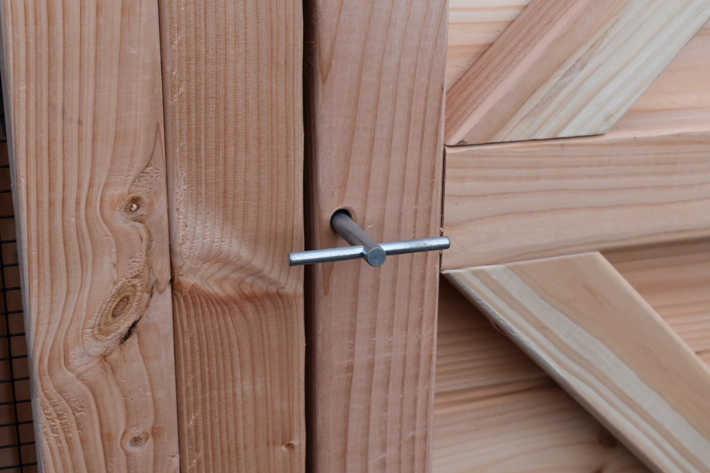 - En bois de Douglas, avec des cadres de 68x44mm, des planches avec un épaisseur de 18mm. Même sans traitement du bois, le bois est durable pour 15 ans, mais le bois se devient gris vite si vous n'utilisez pas des huile pour le Douglas.