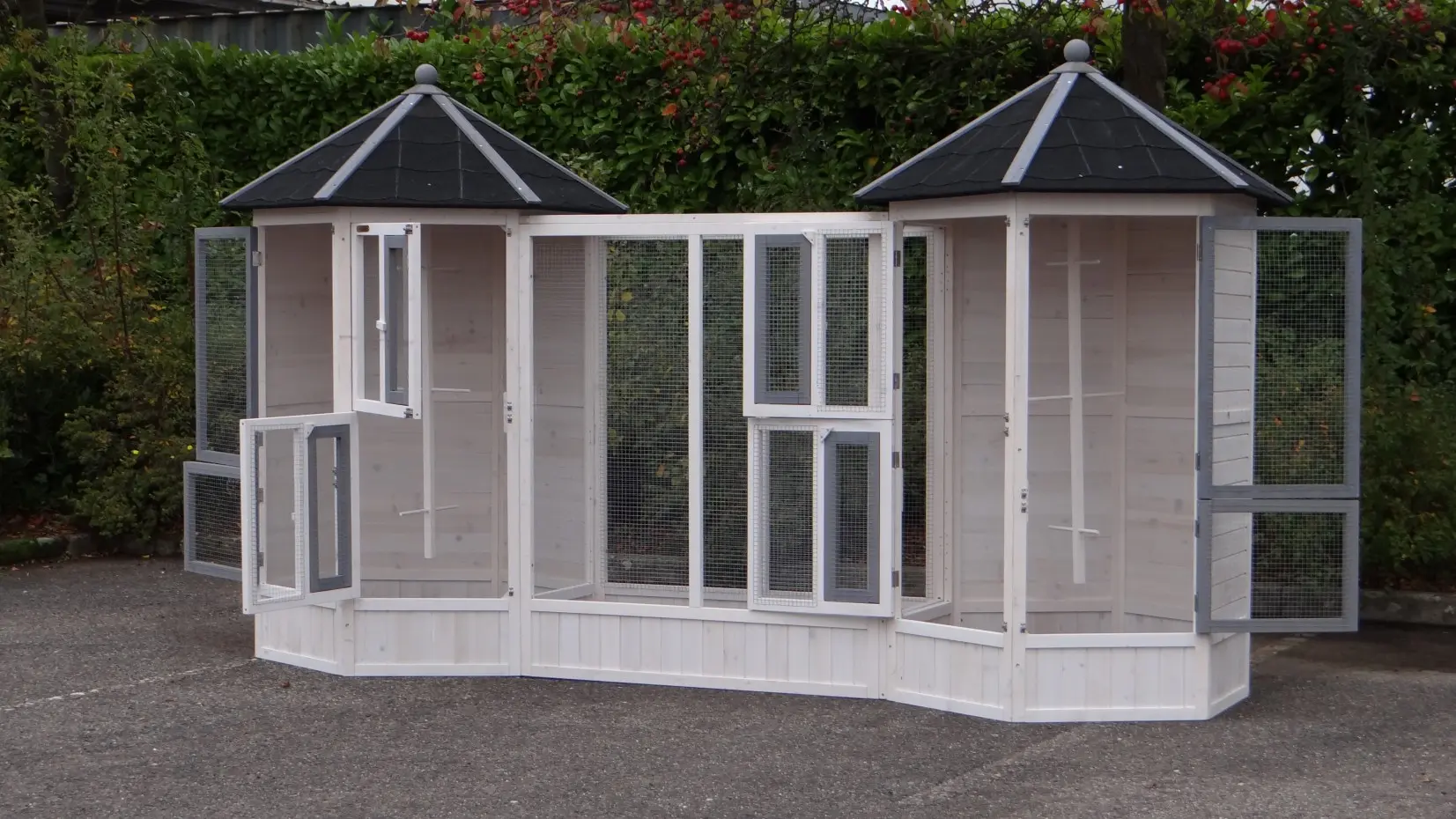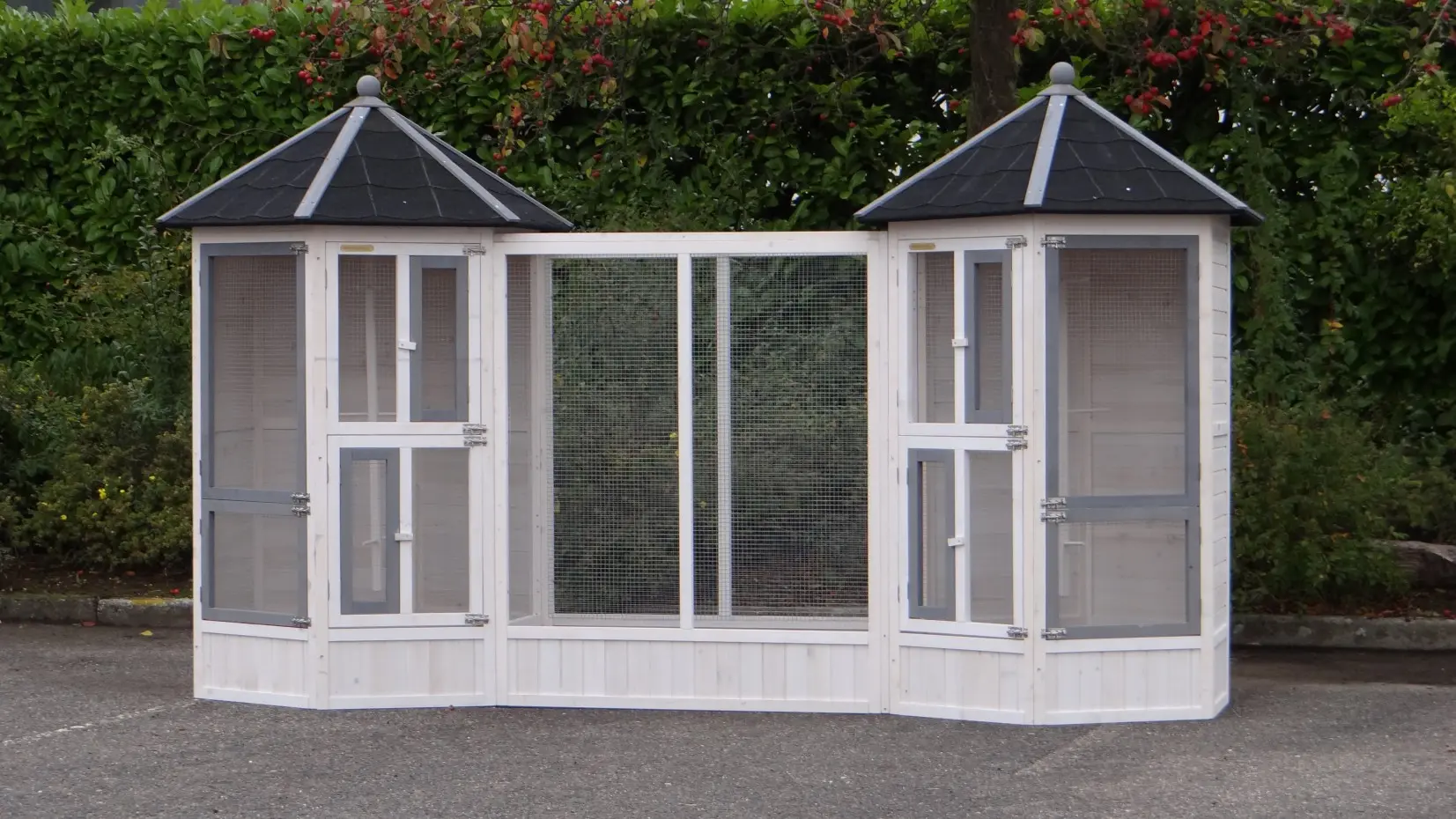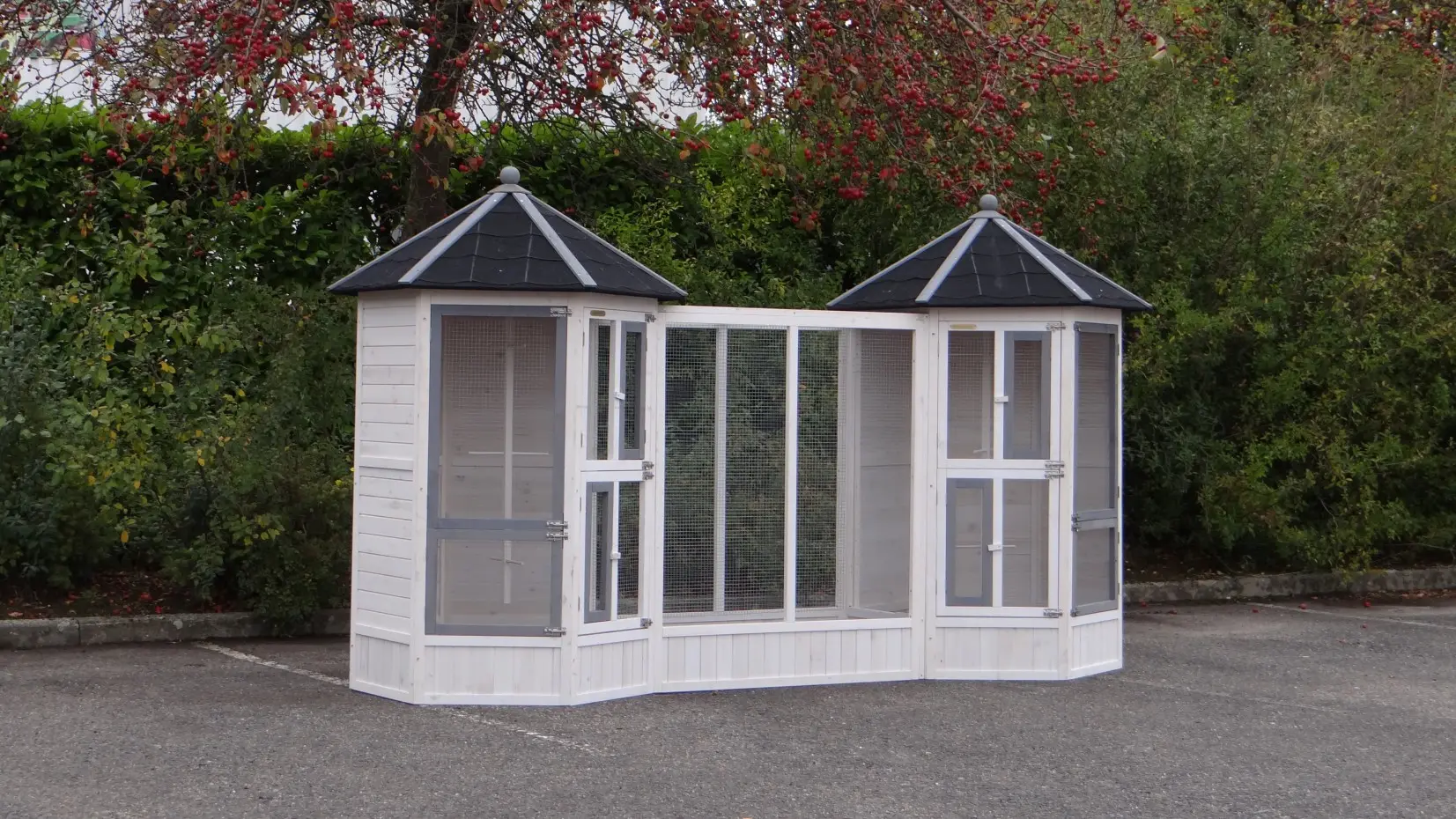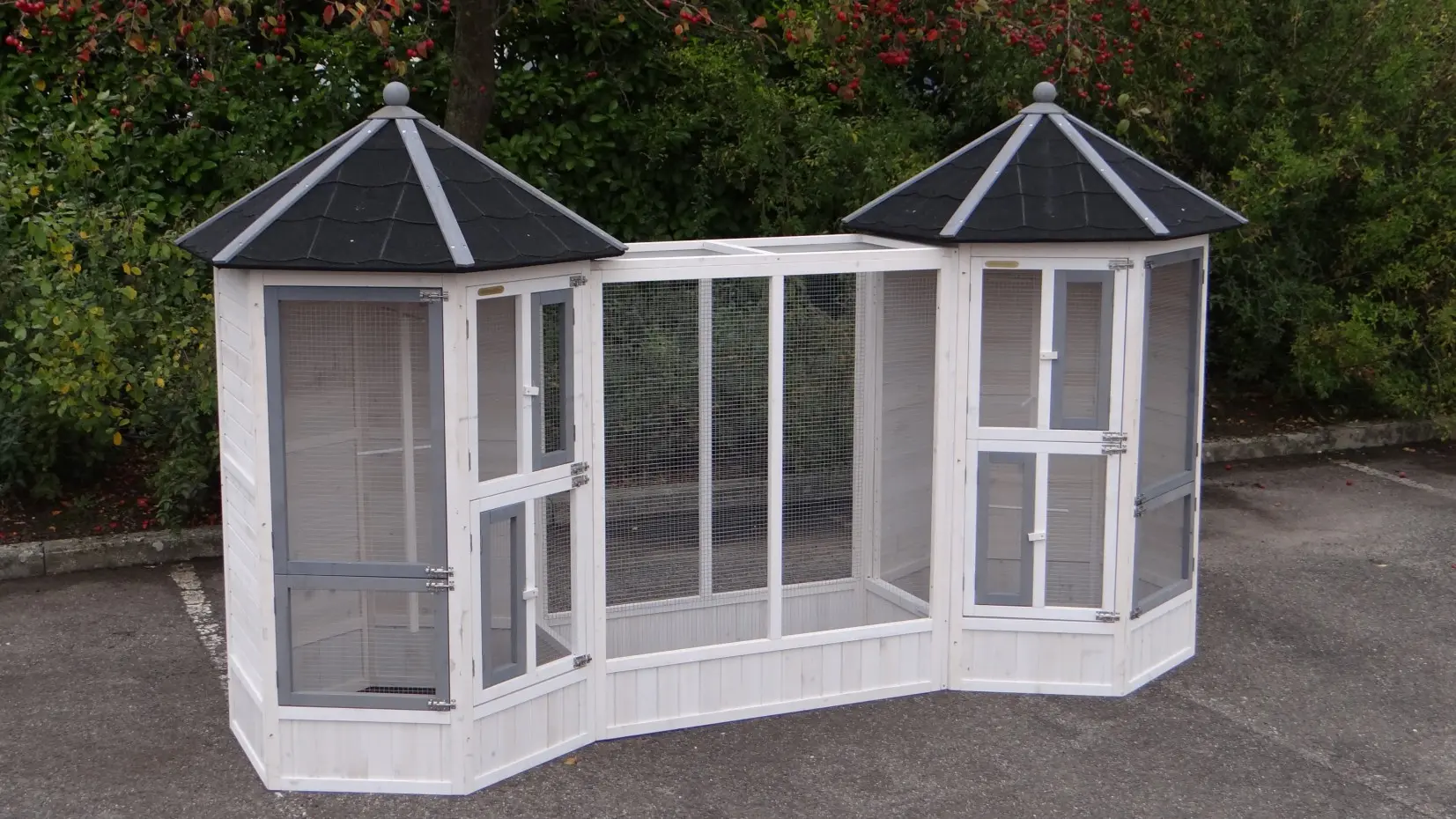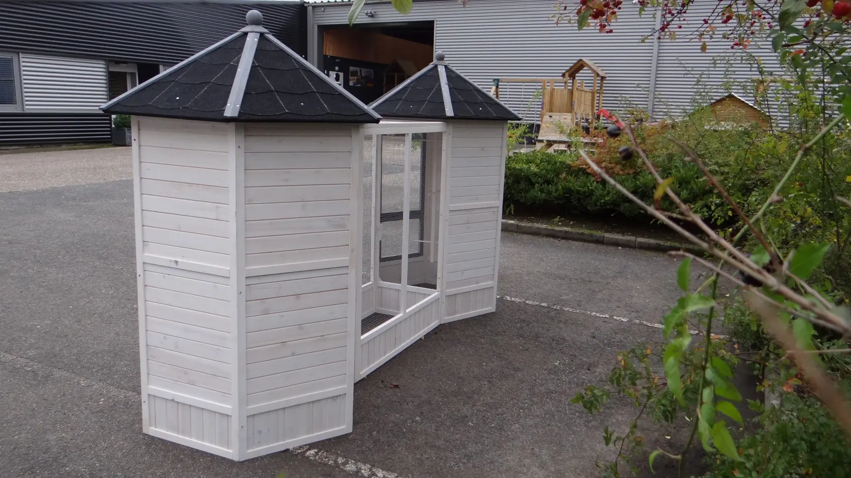 La superbe volière Hannah associe deux volières hexagonales élégantes à un enclos d’extension, formant un espace extérieur unique et spacieux pour vos oiseaux. Grâce à sa mangeoire rotative, ses nombreuses portes, ses abris nocturnes et ses perchoirs, la volière Hannah offre un confort optimal et peut être agrandie à l’infini.