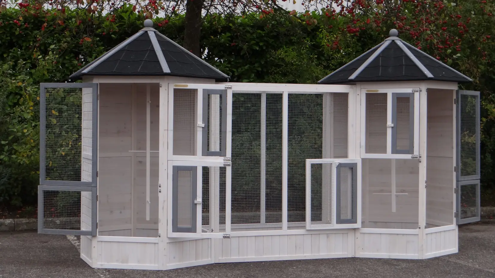 - Cette volière est équipée de portes spacieuses pour une accessibilité optimale
