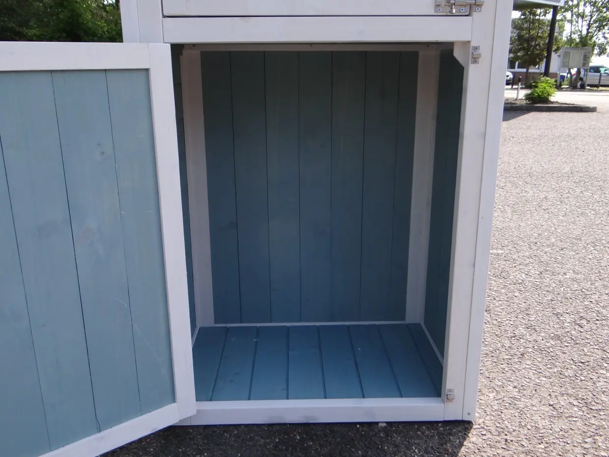 La volière Amalia est équipée d’un abri de nuit facilement accessible pour vos oiseaux. L’abri nocturne de cette volière possède une petite porte. Dans cette porte se trouve une trappe avec une ouverture grillagée, ce qui vous permet de regarder facilement à l’intérieur sans que les oiseaux ne s’échappent. Sous l’abri nocturne se trouve un espace de rangement pratique. Les fenêtres sont ornées de jolis croisillons. La volière Amalia dispose d’un vaste enclos permettant aux oiseaux de voler librement. Cette volière sera un véritable atout décoratif dans votre jardin !