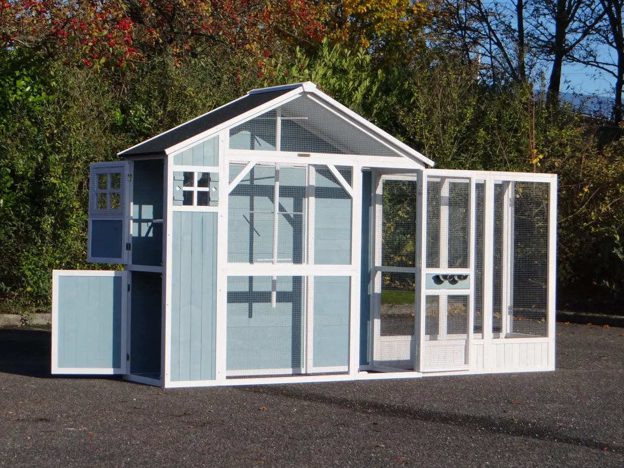 - Cette volière est équipée de portes spacieuses pour une accessibilité optimale