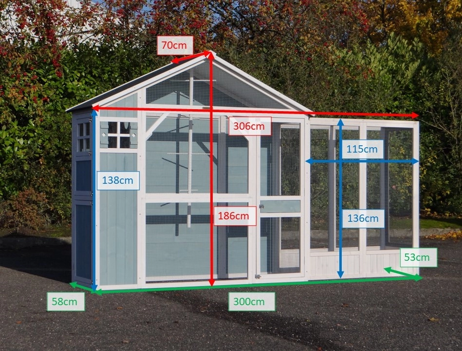 | Dimensions extérieures incluant le toit (LxPxH) | 306x70x186cm |